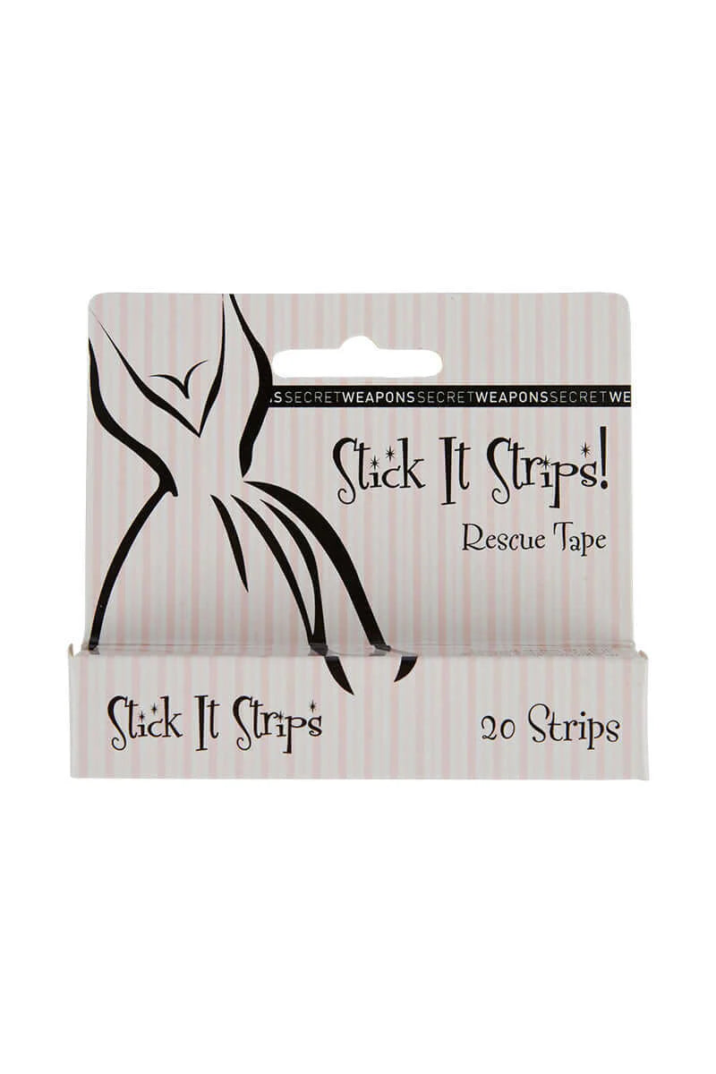 Stick It Rescue Double Sided Fashion Tape allows you to flaunt a little, but not the whole lot! Our box of pre-cut totally invisible Fashion Tape Strips is handbag sized so emergencies don't send send you home early.