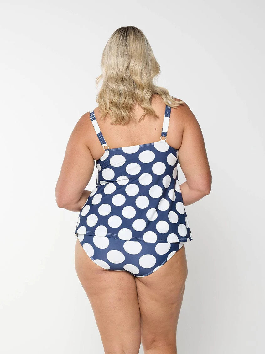 The Capriosca Large Polka Dot Tankini Top combines practical design with timeless style. Featuring a supportive shelf bra with moulded cups and discreet mastectomy pockets, this piece prioritises inclusive comfort for all body types. Adjustable straps allow you to customise your fit, while the extended length provides excellent coverage and support. Built with superior construction quality, the classic nautical polka dot print delivers effortless elegance. UPF 50+ sun protection shields your skin during water activities and outdoor wear, making this tankini a versatile, dependable choice for confident swimming and leisure.