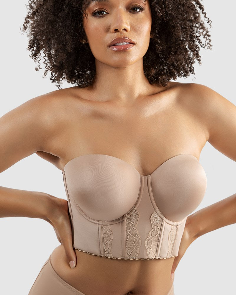 Perfect under those special occasion outfits, this strapless bustier bra lifts and shapes your bust while also smoothing out your sides and back. The underwired cups are lightly padded with foam for a smooth, seamless finish, and a combination of silicone trims and non-slip gripper at the back ensure this longline bra stays firmly in place.